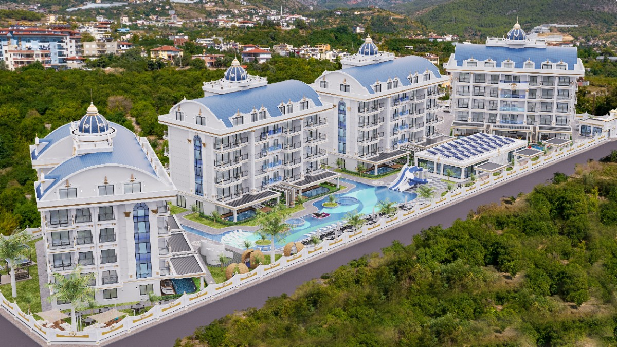 Wohnung zu verkaufen in Alanya Oba mit Innen- und Außenpools, Fitness, Innen- und Außenparkplatz, Hamam, Sauna, Dampfbad, Salzraum, Kinoraum, Kinderspielzimmer, Lobby, Musikraum, Generator und Sicherheit.