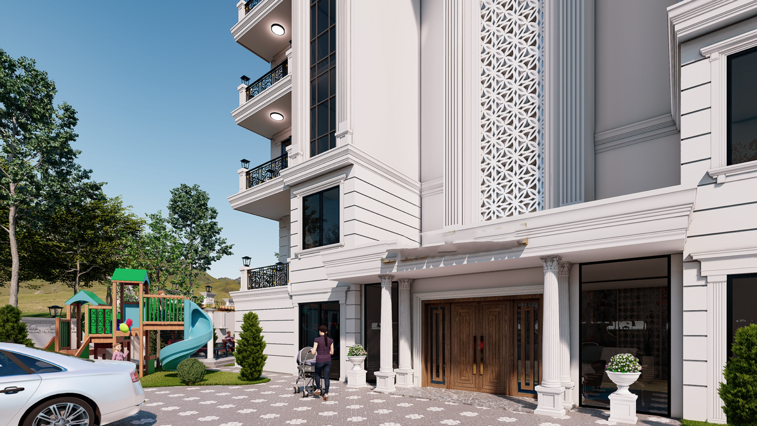 Projede toplam 15 daire ve 2 mağaza bulunmaktadır. Site içerisinde: