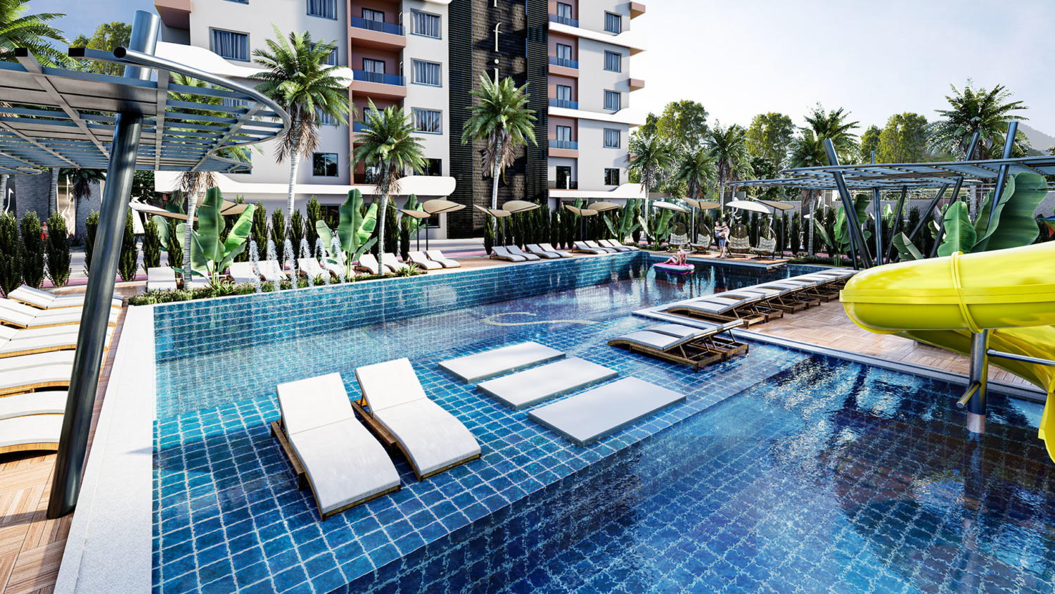 Dairelerin iç mekanları tamamen döşenmiş banyo ve mutfak ile donatılmıştır. Mutfakta granit tezgah, banyolarda seramik duvar kaplamaları vardır. Balkonlar geniş olup engellenmemiş muhteşem deniz manzarası sunar. Erken yatırım, uzun vadeli kazanç ve kişiye özel taksitli ödeme seçenekleri sağlar.